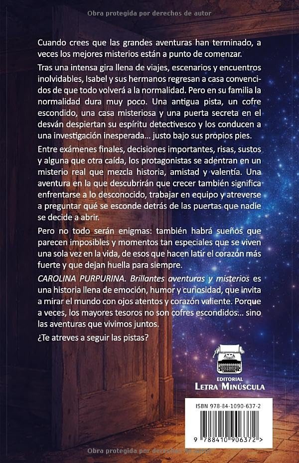 Espero que disfrutéis del libro, y no lo olvidéis, como dice Carolina, “si ponemos un puñadito de purpurina en la palma de la mano y soplamos, los problemas vuelan y desaparecen en el aire, como la purpurina…”.